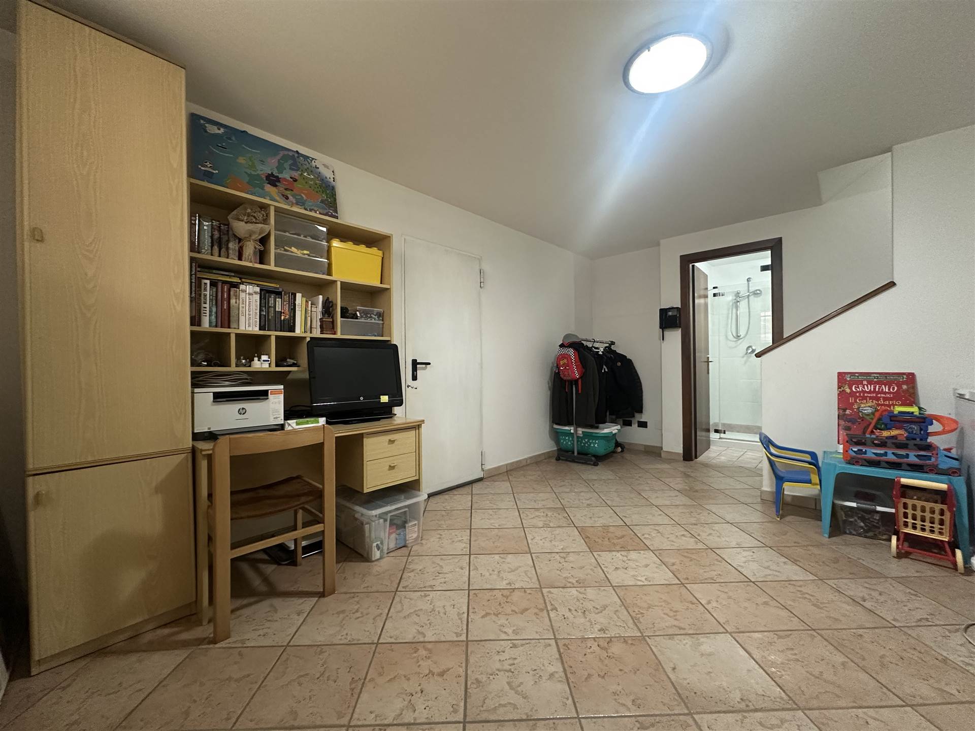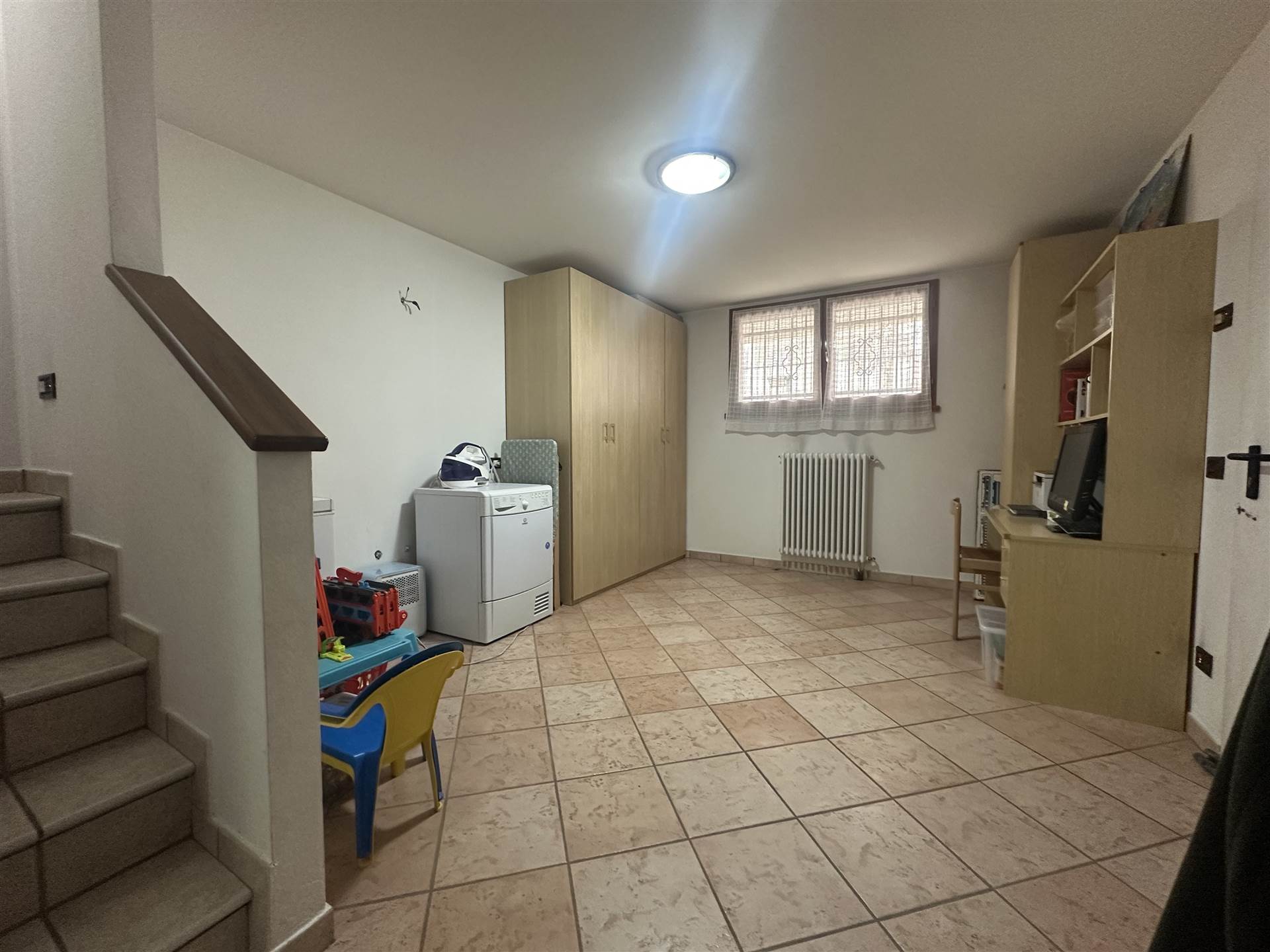 Direttamente collegata con la zona living una scala in muratura conduce al piano seminterrato che ospita una taverna finestrata e riscaldata, la lavanderia e direttamente collegato il garage.