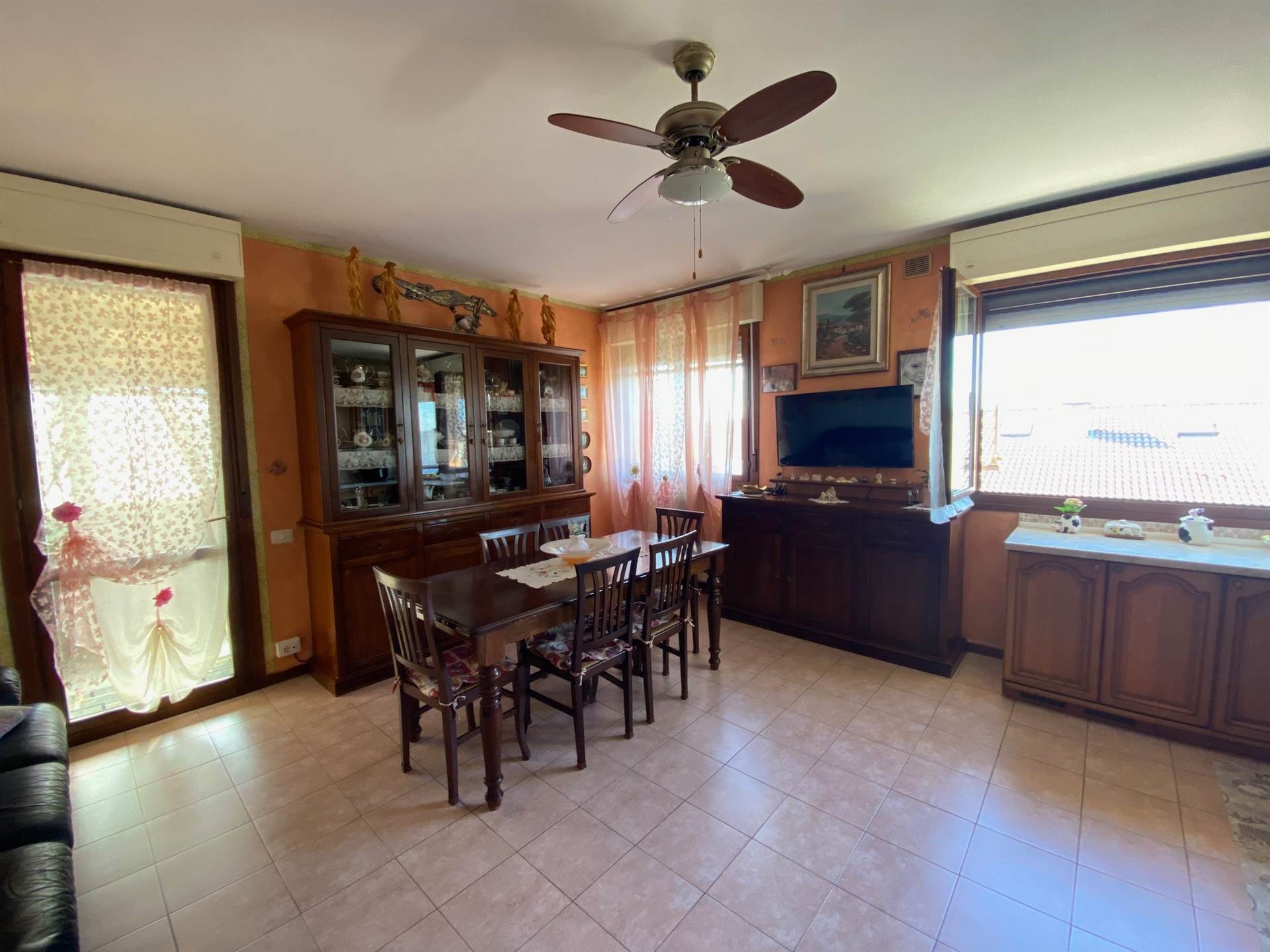 Luminosissimo appartamento su quartiere residenziale centrale a Cartura. Posto al piano Secondo ed ultimo e' costituito da un ingresso, ampio open space che affaccia sul terrazzone di 24 mq., tre camere ed un bagno; completa l'offerta un garage al piano Terra.